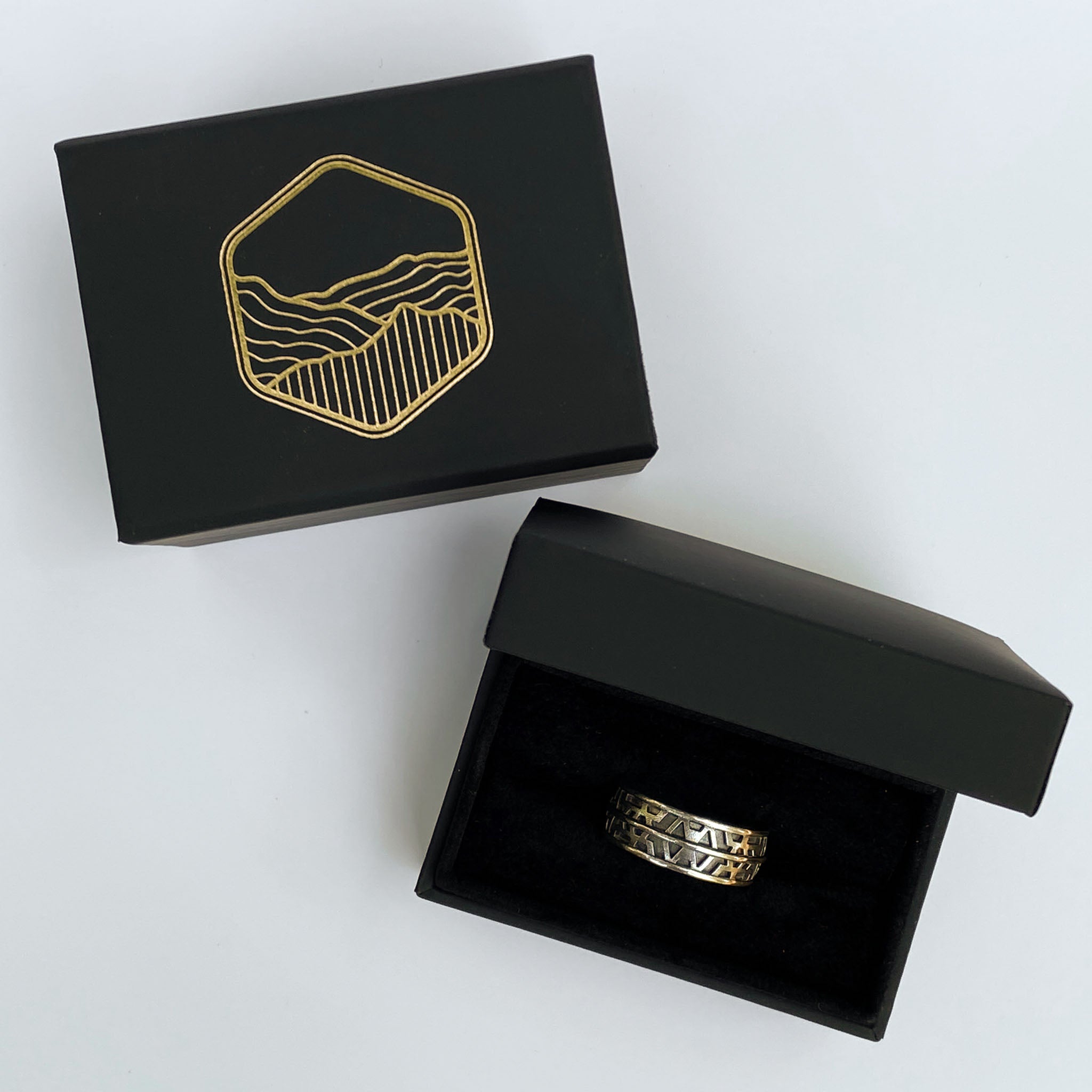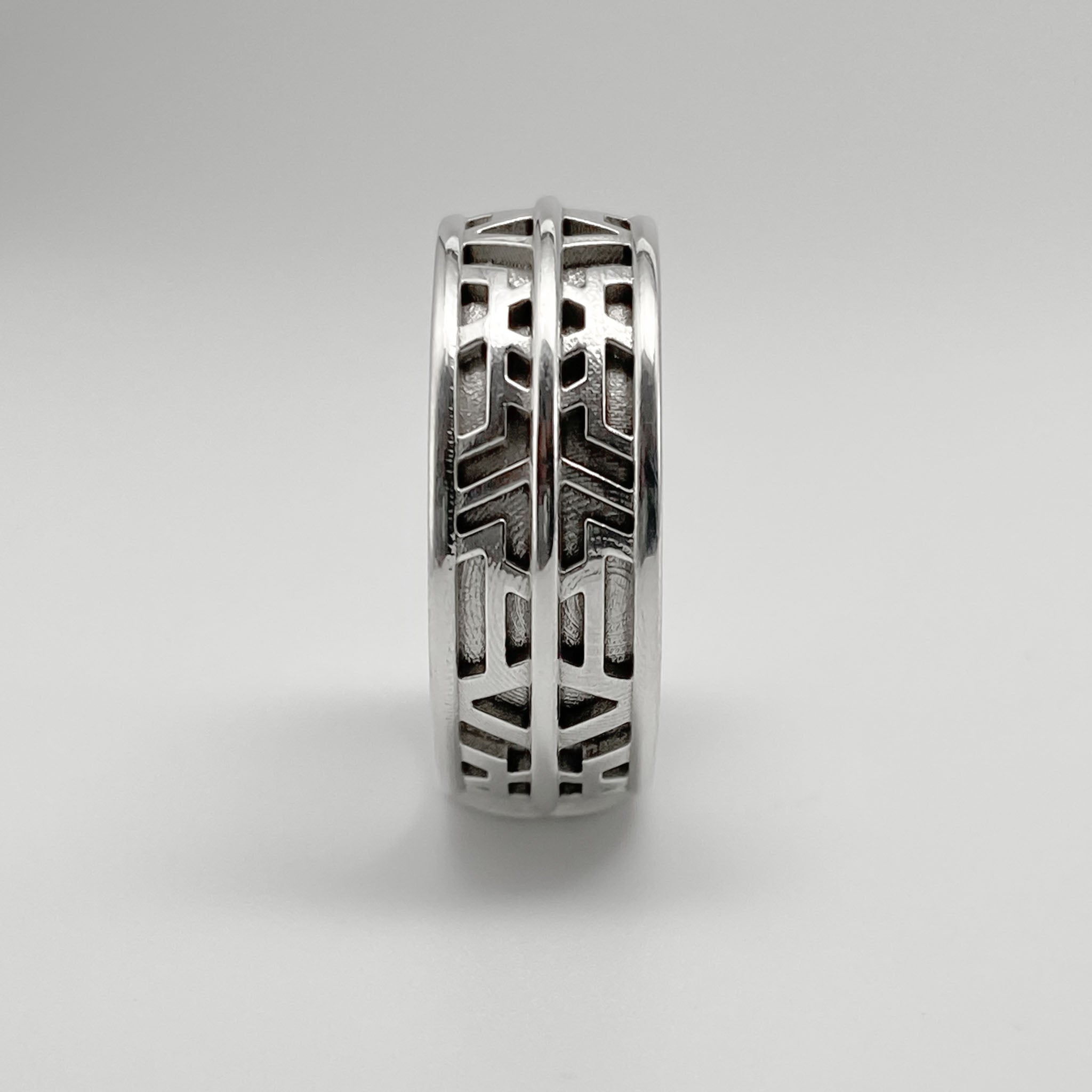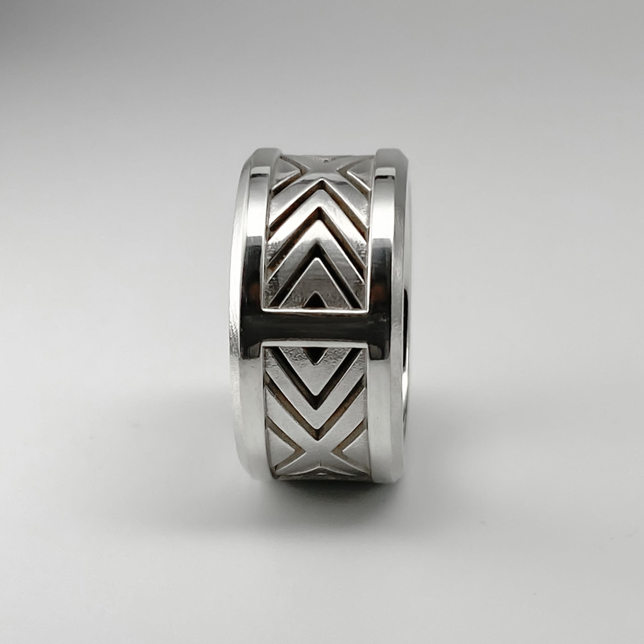 Striking a balance between presence and precision, the 9mm flat band offers a clean, architectural profile that feels tailored yet bold on the hand.