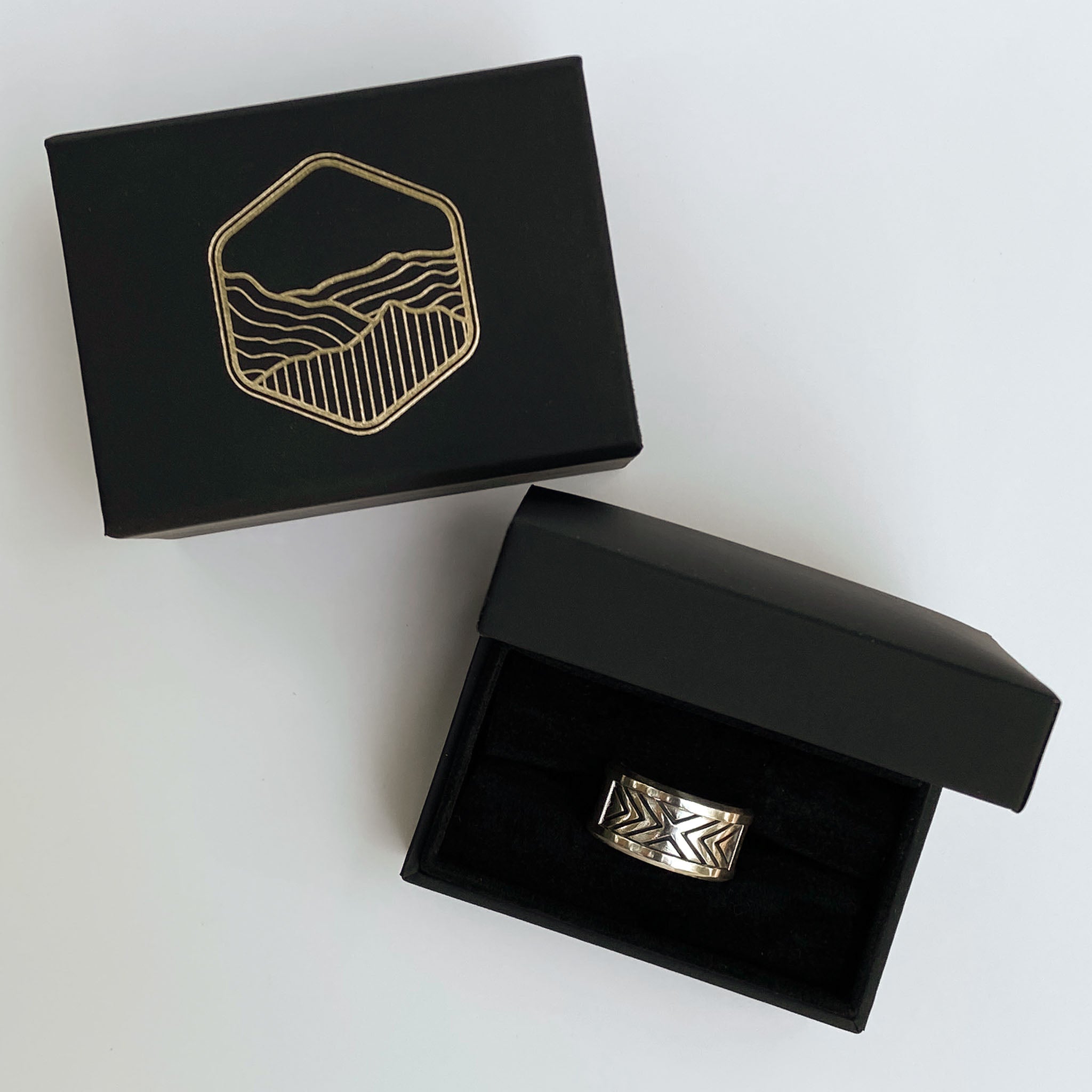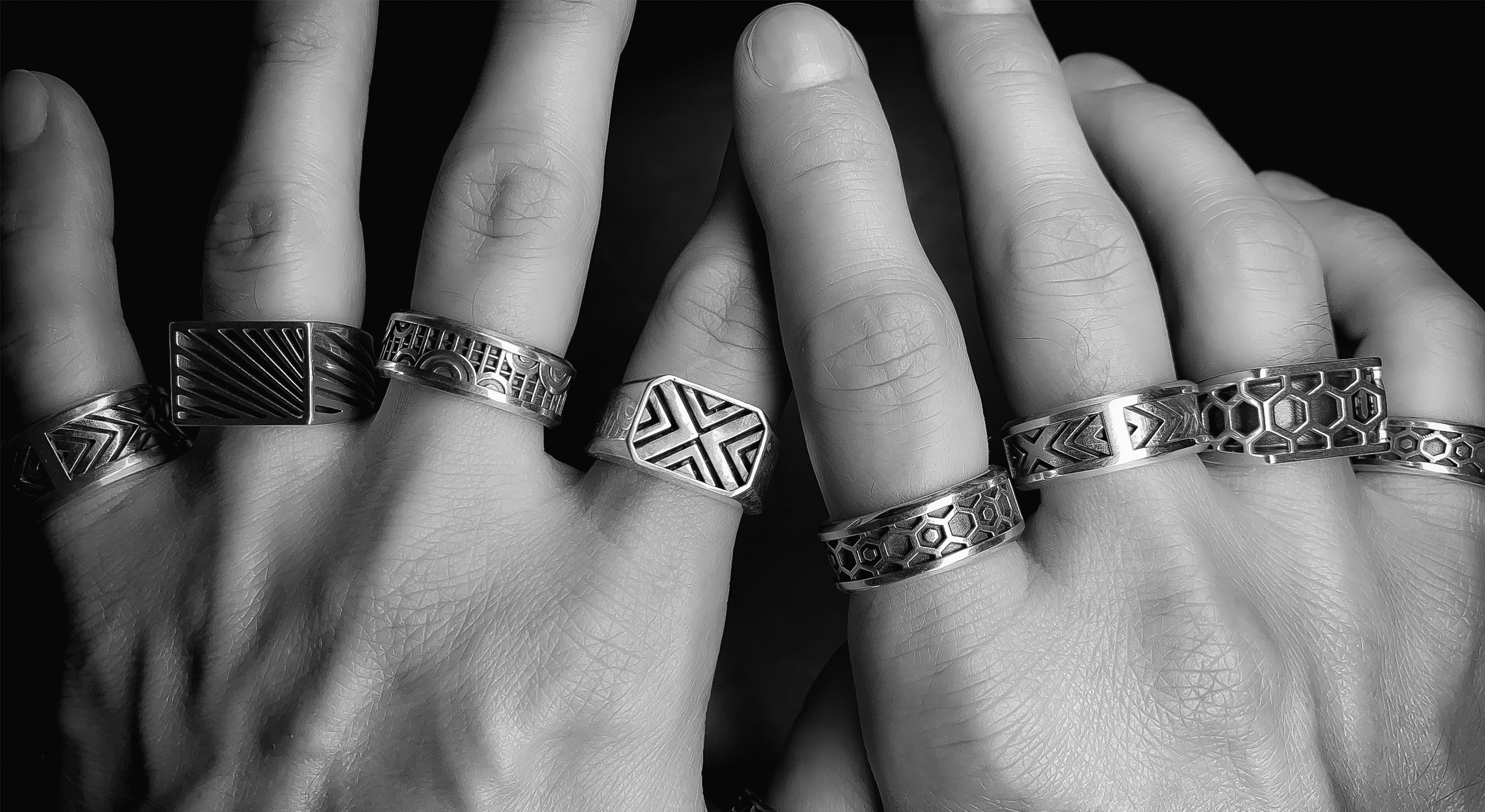 Getting the right size is important, especially since these bands are wider than average. They’re thick, solid, and bold, with most designs ranging from 9mm to 12mm, so consider sizing up by half a size. (Tapered signets are an exception, as their narrow underside usually fits true to size.)