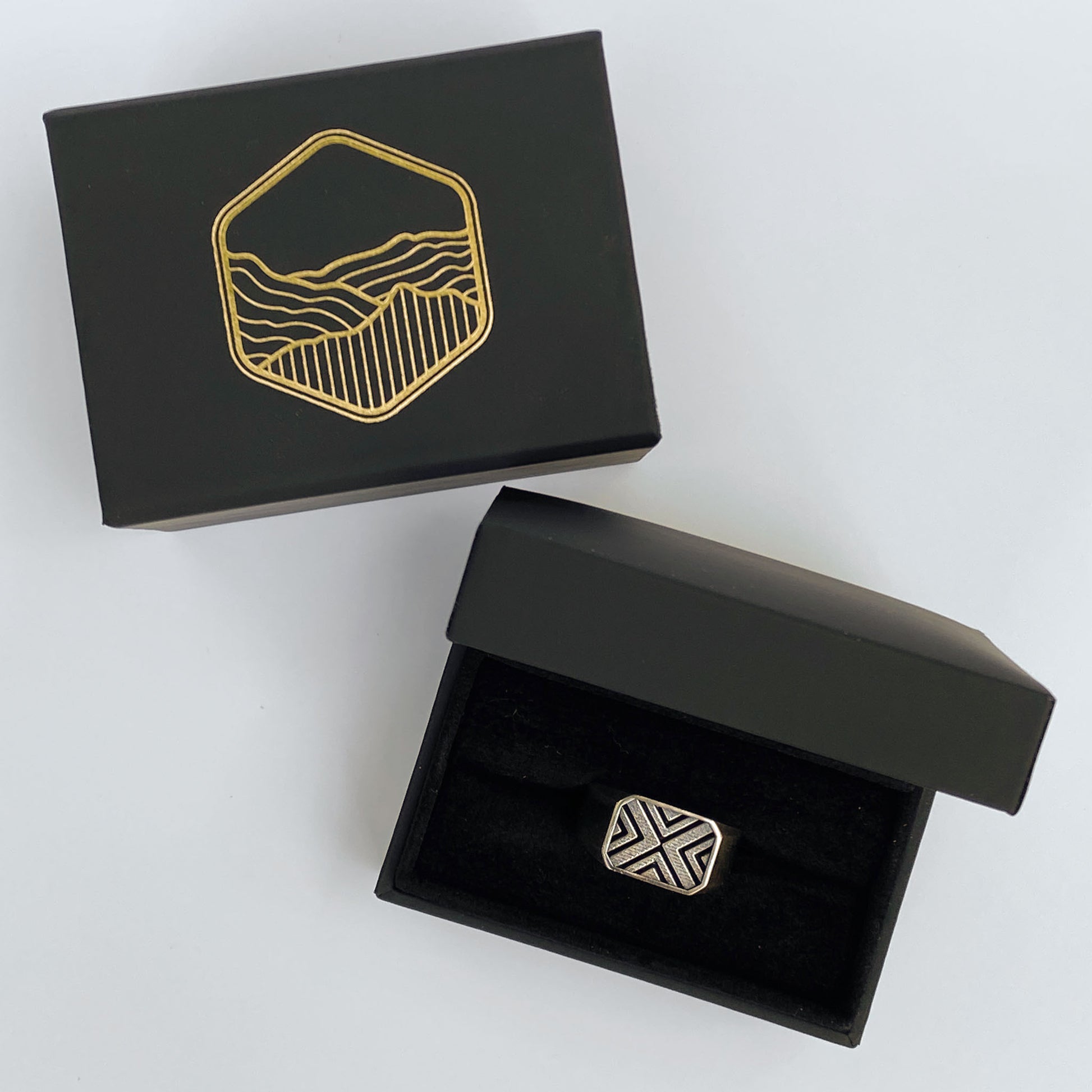 The Reid Signet features the classic herringbone pattern, framed by a sleek border that accentuates its intricate details. Inspired by centuries of design history, this piece blends traditional elegance with contemporary edge.