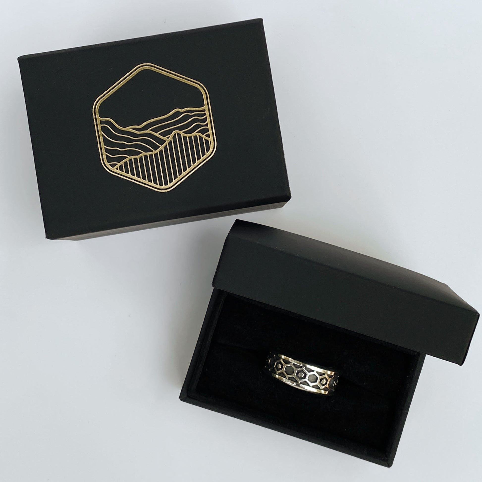 Inspired by the geometry of honeybee hives and paper wasps, the Wexton Band transforms natural precision into a refined, modern form crafted with advanced 3D techniques.